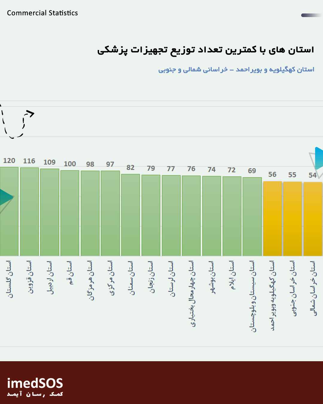 استان های با کمترین تعداد توزیع تجهیزات پزشکی استان کهگیلویه و بویراحمد – خراسانی شمالی و جنوبی