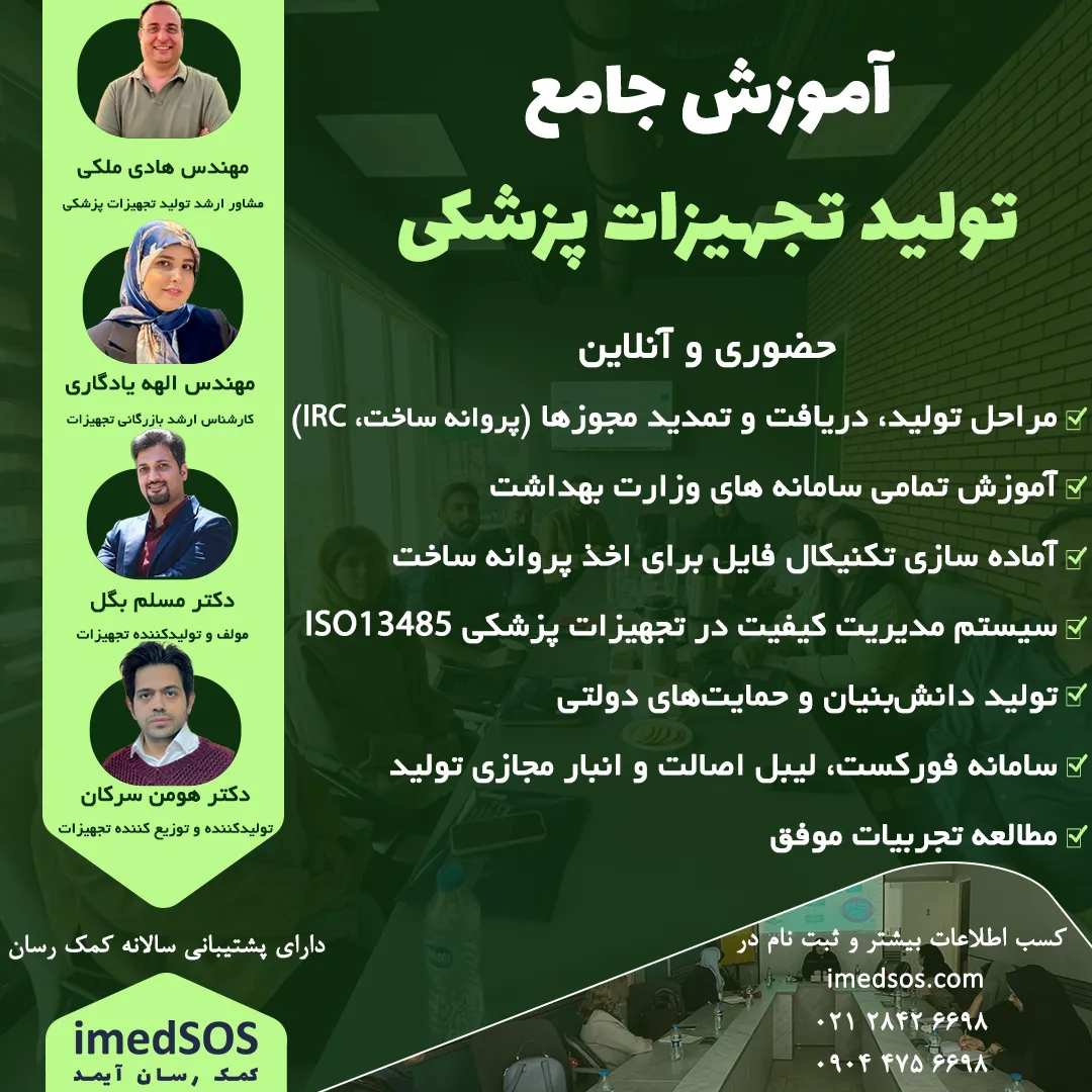 ما در دوره آموزش جامع تولید تجهیزات پزشکی موارد زیر را کامل کاموزش میدهیم:
