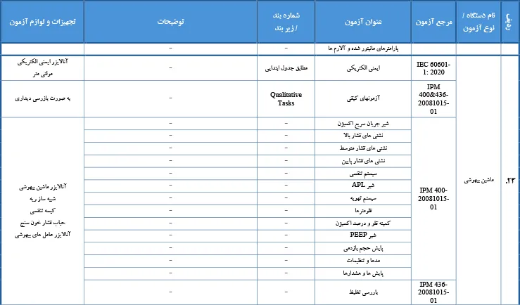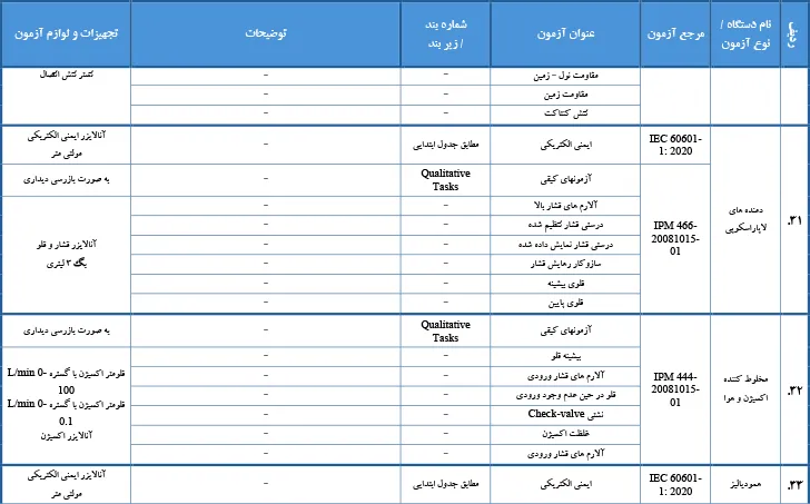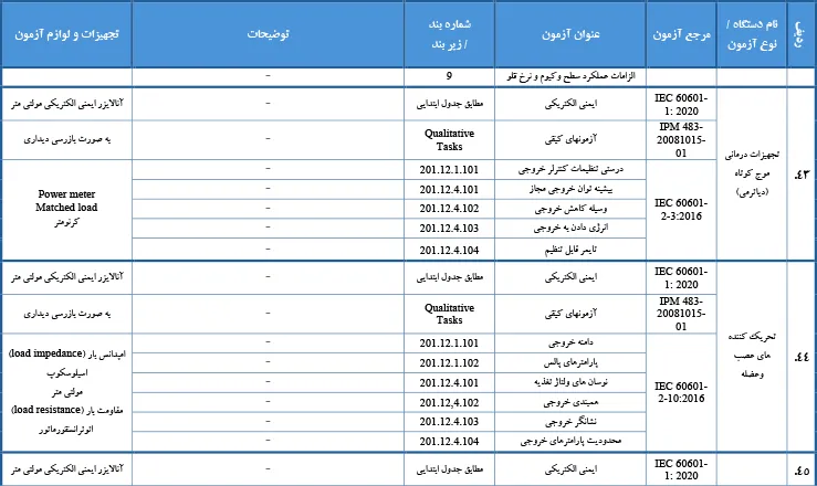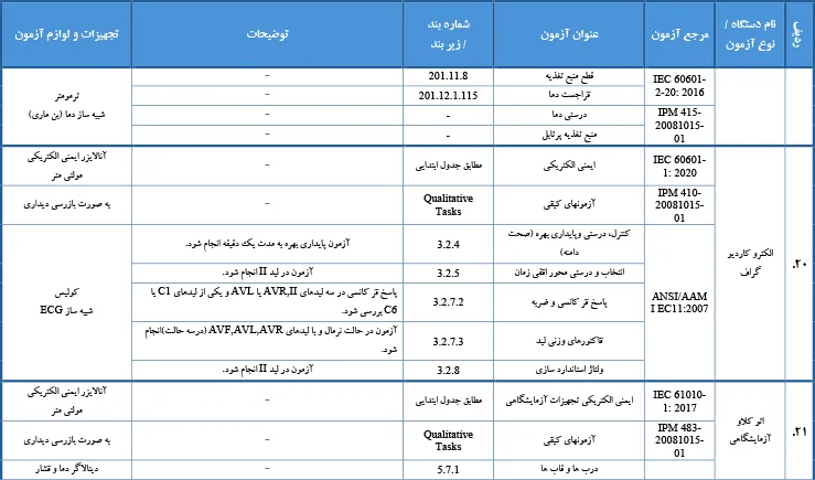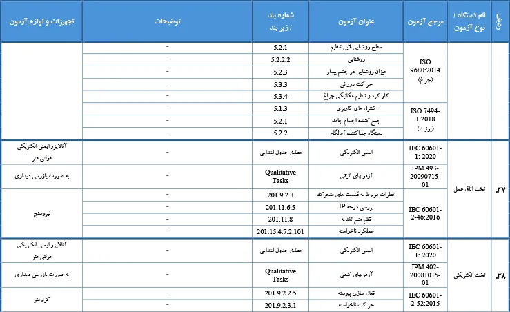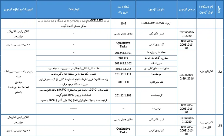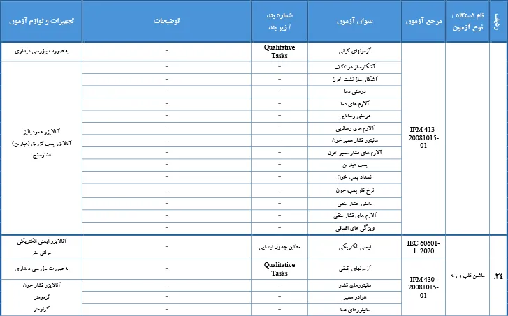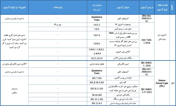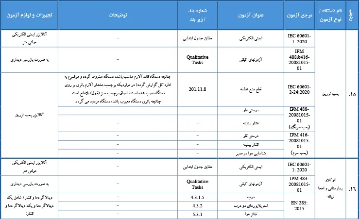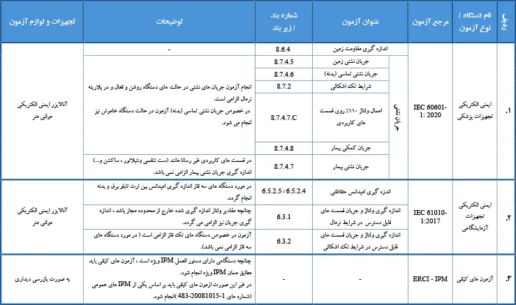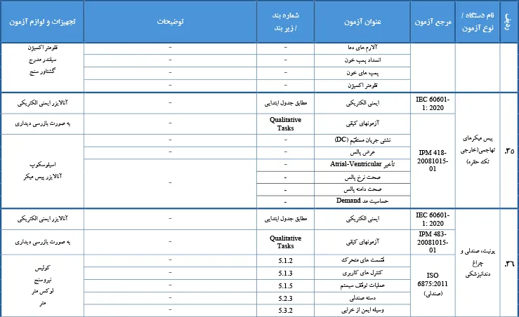 بروزرسانی حداقل الزامات آزمونهای کنترل کیفی تجهیزات پزشکی